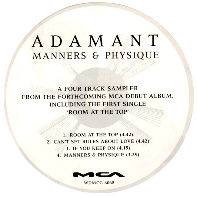 Adam Ant - vocals MCA promotional tin which included 4 tracks from the Manners & Physique album on CD and cassette. The cassette plays the 4 tracks only on one side. |