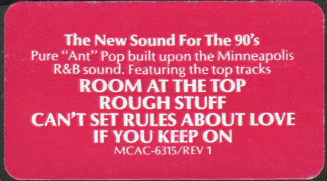 Adam Ant - vocals Promotional sticker on the reverse of the cassette |