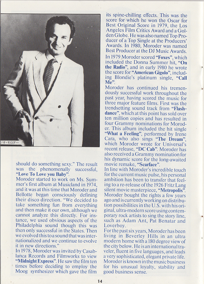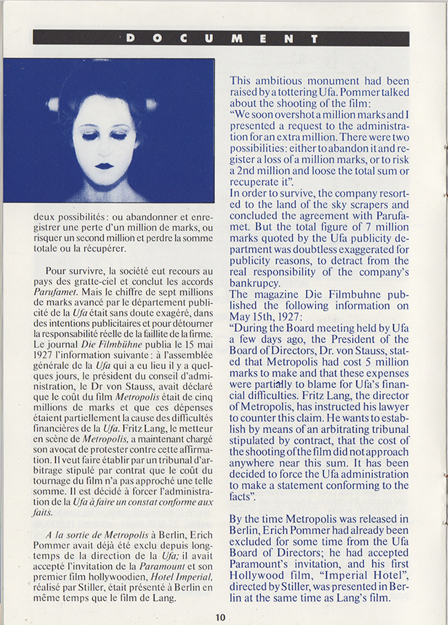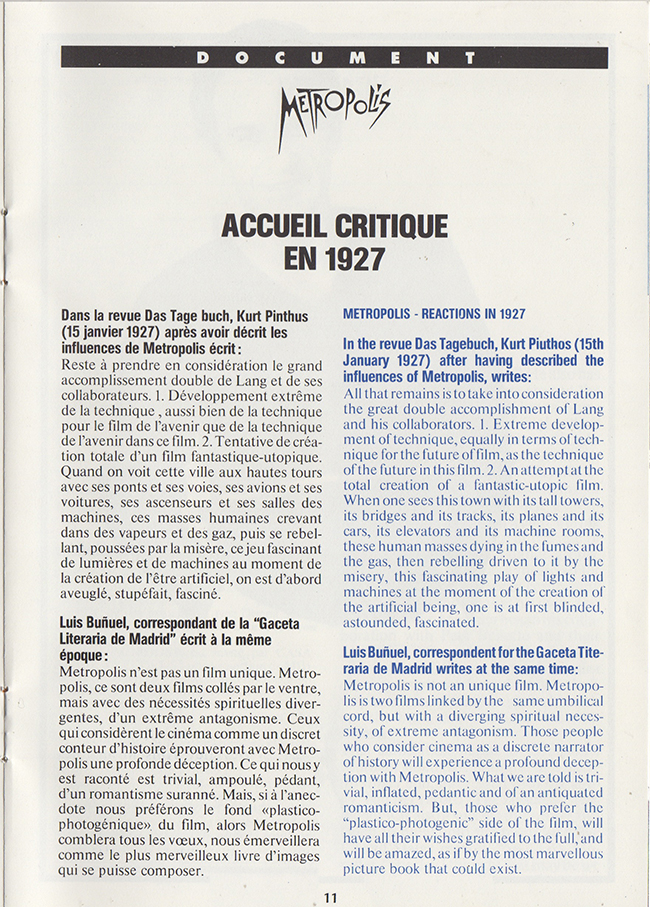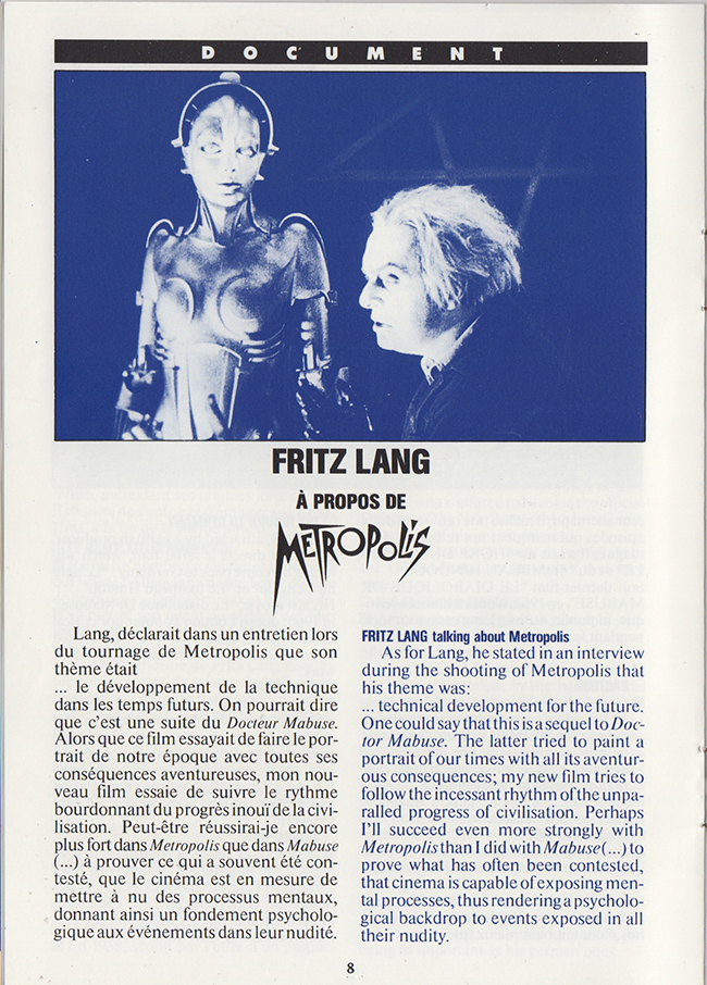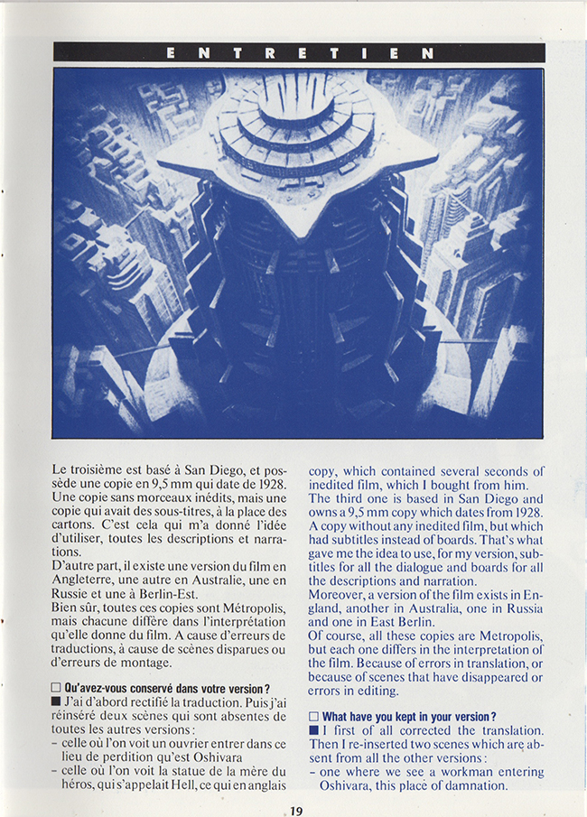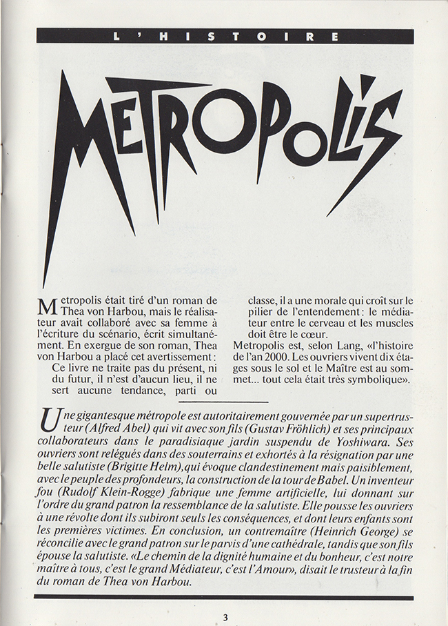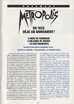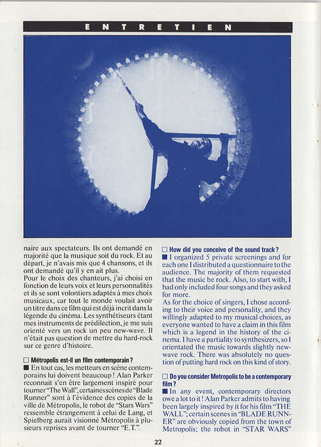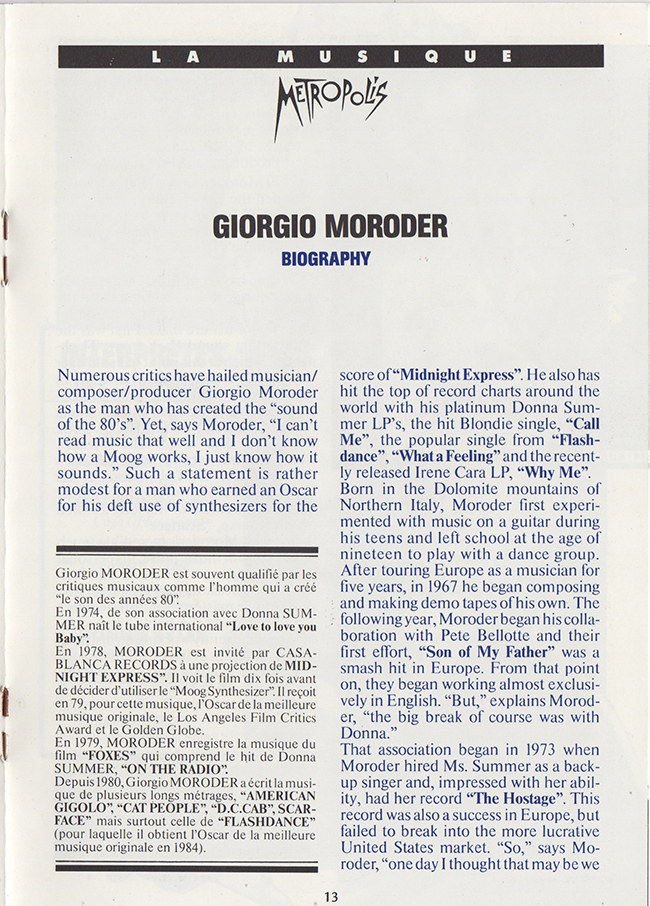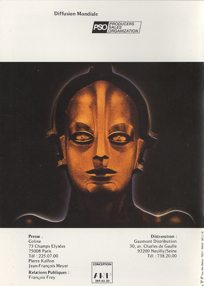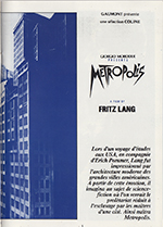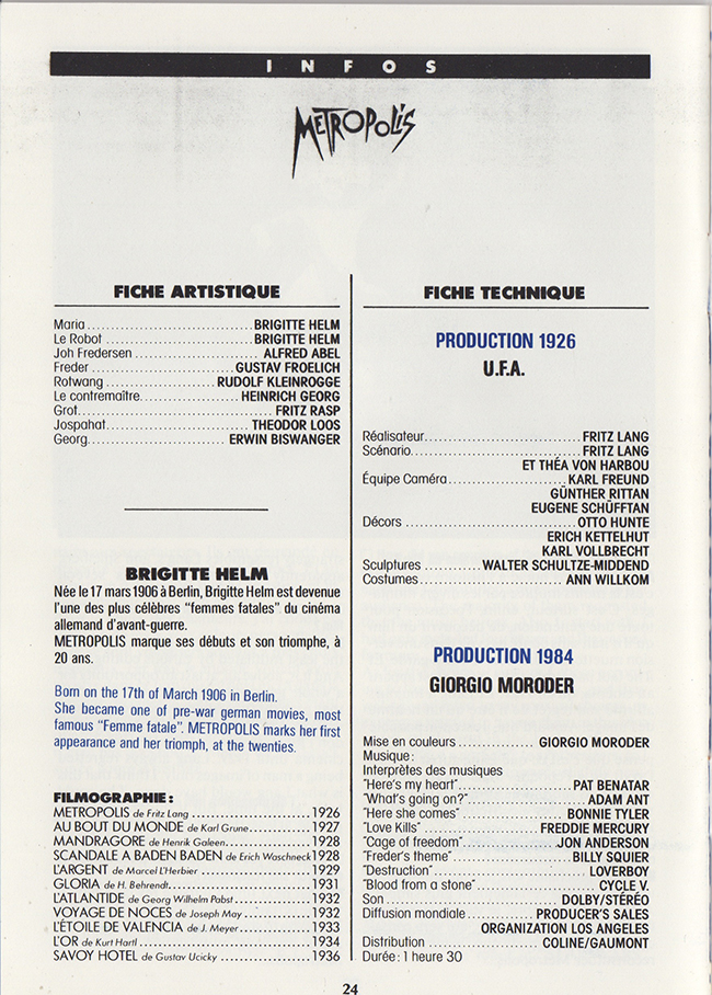 French promotional item for the G.Moroder 1984 reworking of the 1927 release of the film Metropolis.