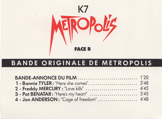 Side 2 Movie Trailer Bonnie Tyler - Here She Comes Freddie Mercury - Love Kills Pat Benatar - Here's My Heart Jon Anderson - Cage of Freedom