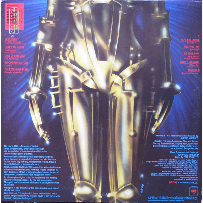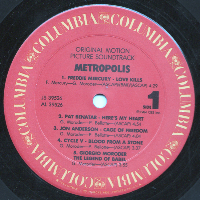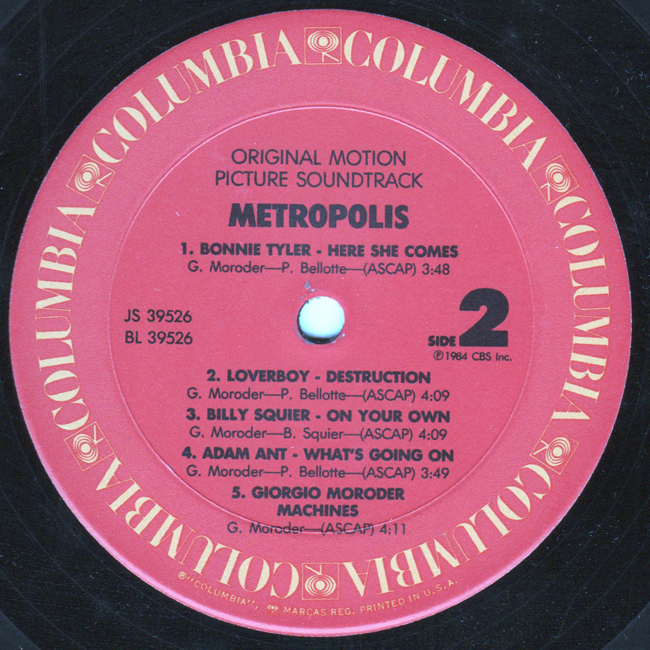 Adam Ant Country Label Catalogue Number Matrix numbers Format Release date Side 1 Side 2 Adam Ant features on one track "What's Going on" on the film sountrack for Metropolis This 1984 reworking of the 1927 Fritz Lang classic film was by Giorgio Moroder with a modern soundtrack. The promotional album came with a gold CBS stamp on the back of the sleeve, as shown below: