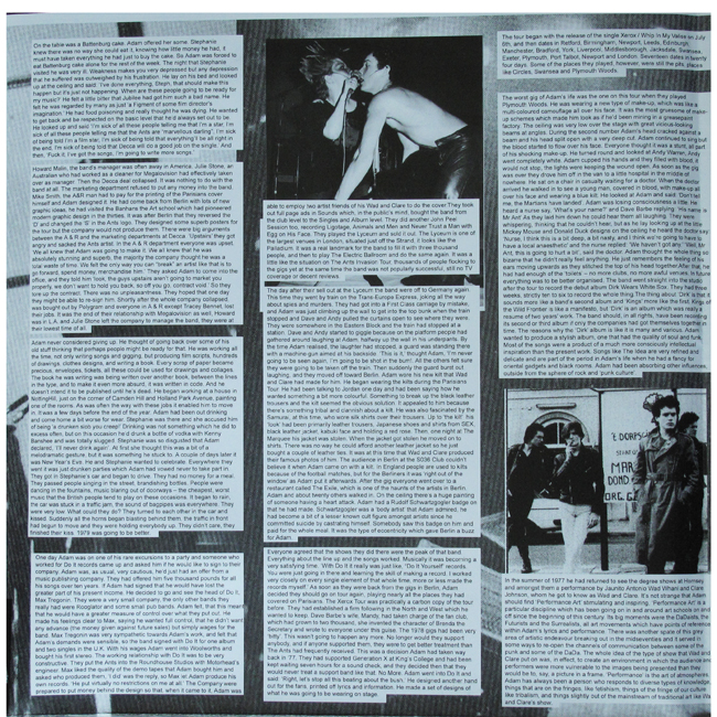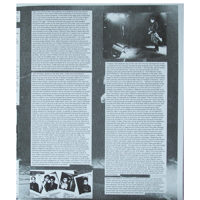 The wraparound sleeve/poster is made up of text from the James Maw book from 1981 - The Official Adam Ant Story with the period relating to and around the Milan show (Pages 77 - 104 in the book)