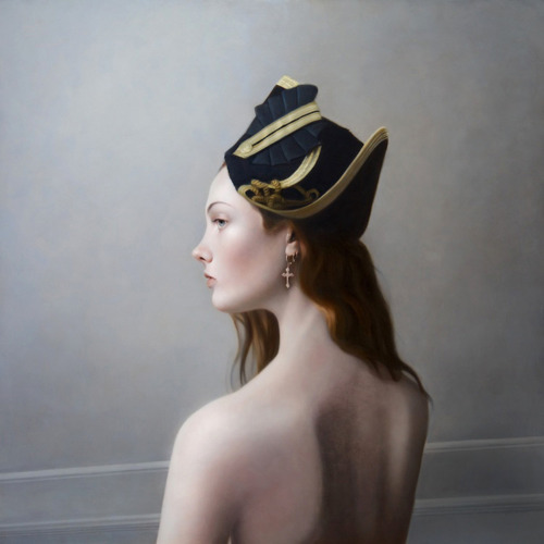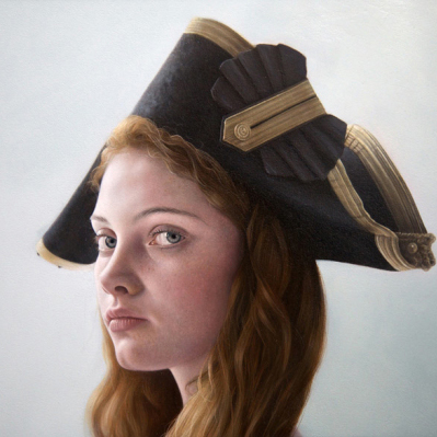 The idea for the series featuring Georgie and the Cocked Hat came about in late 2009. I'd just painted a small piece called Toy Soldiers, a girl wearing a red Guardsman's uniform and the ideas behind that painting sparked off the Cocked Hat series. I worked on that series for about 10 months really intensely culminating in a solo show in Sept 2010. I'm still fascinated by some similar themes, as you can see with Liberty Rests! There's a narrative running through them that is really personal but also has a wider commentary. Beauty, Art, War, Patriotism all feature and as a portrait painter I'm also fascinated with historical costume...