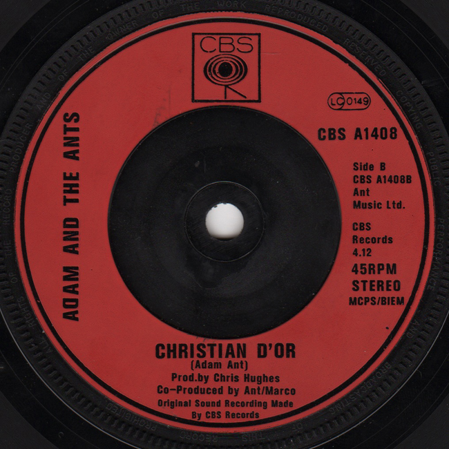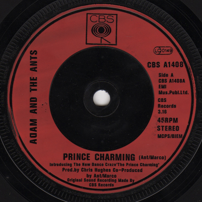Adam and the Ants Country Label Catalogue Number Matrix numbers Format Release date A-side B-side The second single to be released from the Prince Charming album and the band's second number one single. The B-side, Christian D'or, is an old Ants song from 1978. The layout and fonts on the label are different to the standard release. |