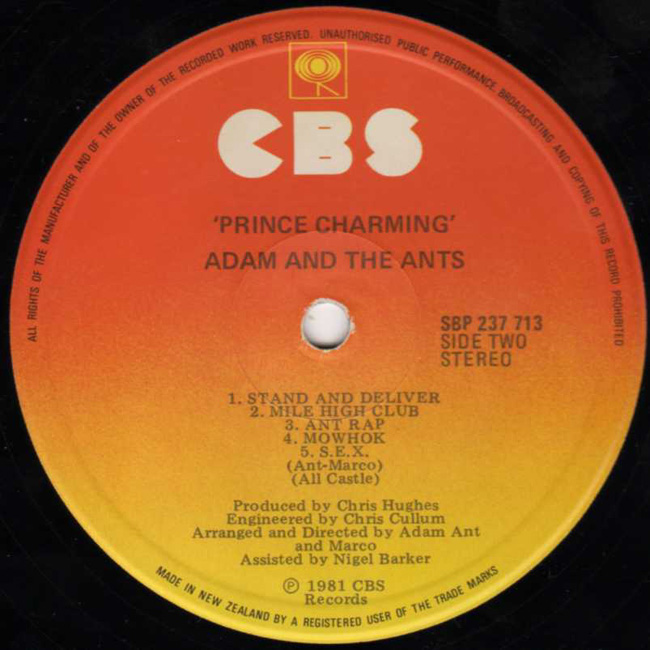 Adam Ant The band's second album for CBS was released, almost to the day, one year after their first. All of the tracks were written in 1981, apart from Picasso (1979) and S.E.X. (1980). |