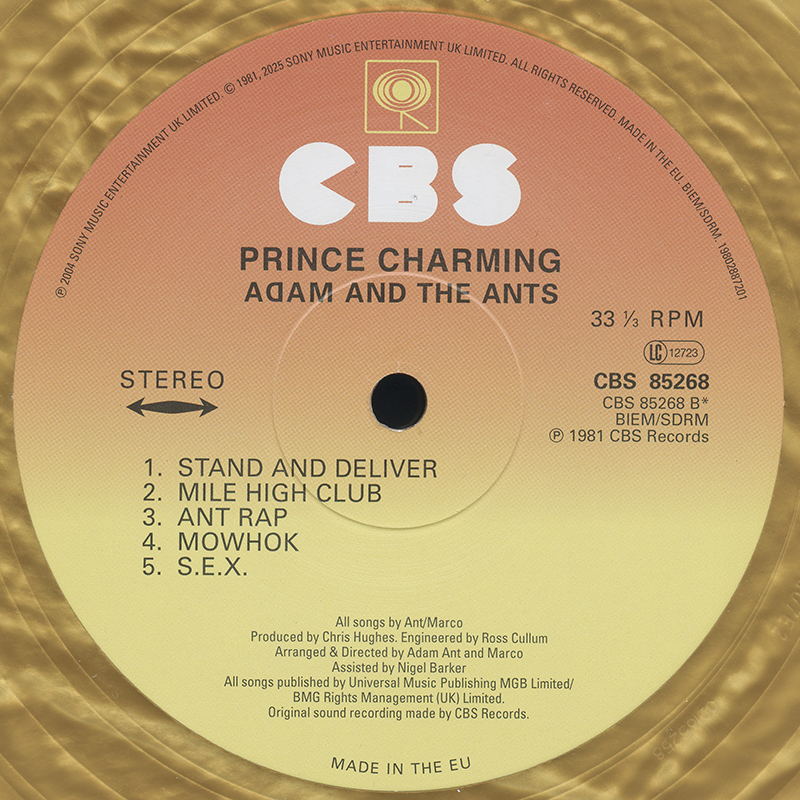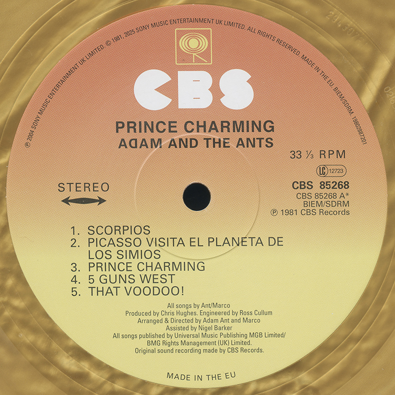 Adam Ant The band's second album for CBS was initially released, almost to the day, one year after their first. All of the tracks were written in 1981, apart from Picasso (1979) and S.E.X. (1980). This gold vinyl release was issued for the 2025 Record Store Day in the UK.