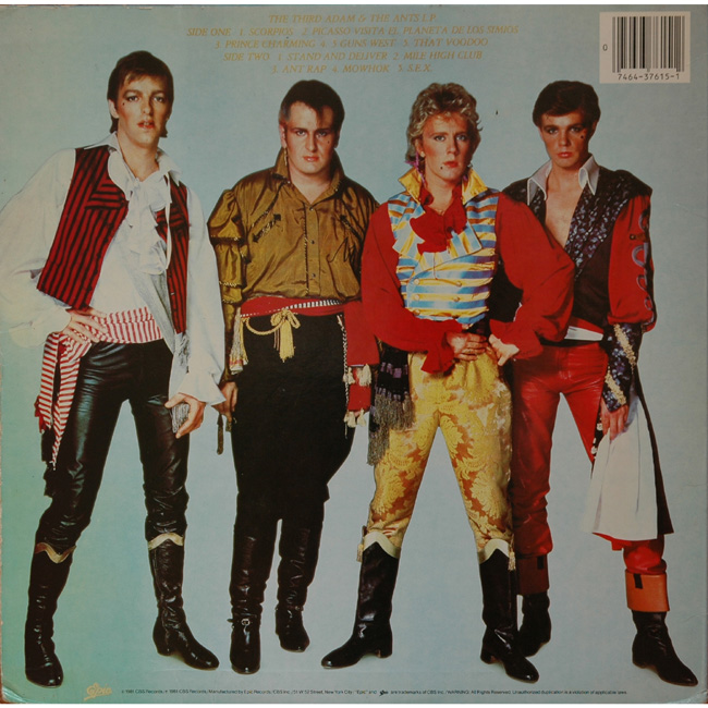 Adam Ant The band's second album for CBS was released, almost to the day, one year after their first. The US version did not come in a gatefold sleeve. All of the tracks were written in 1981, apart from Picasso (1979) and S.E.X. (1980). |