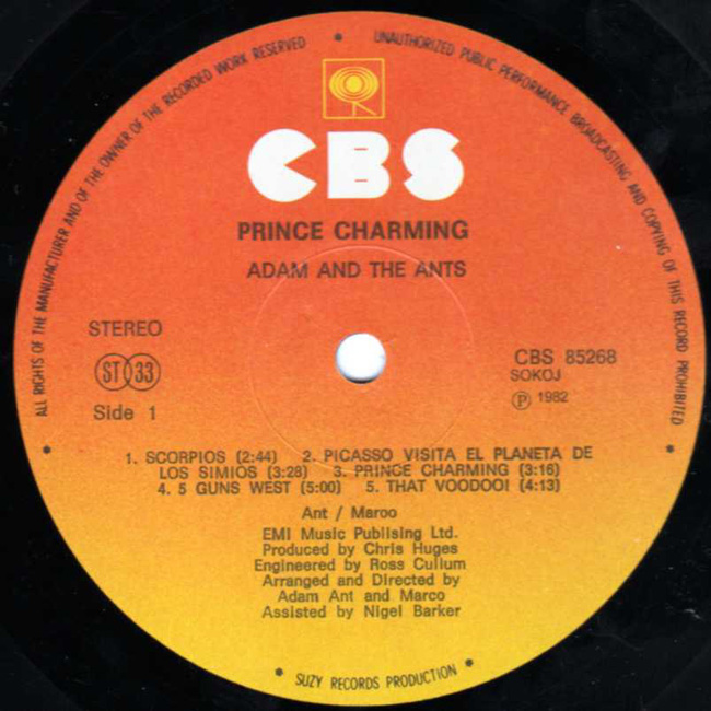 Adam Ant The band's second album for CBS was released, almost to the day, one year after their first. All of the tracks were written in 1981, apart from Picasso (1979) and S.E.X. (1980). The yugoslavian outer sleeve is printed on matte paper and cardboard rather than gloss like all other world releases. CBS releases were licenced through SUZY in Yugoslavia.