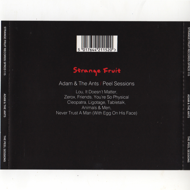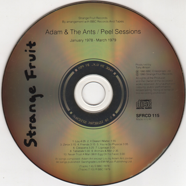 Adam and the Ants Country Label Catalogue Number Matrix numbers Format Release date Tracks Lou /It Doesn't Matter - Recorded at Maida Vale studio 23rd January 1978 Puerto Rican & Deutscher Girls are missing from the first Peel session. |