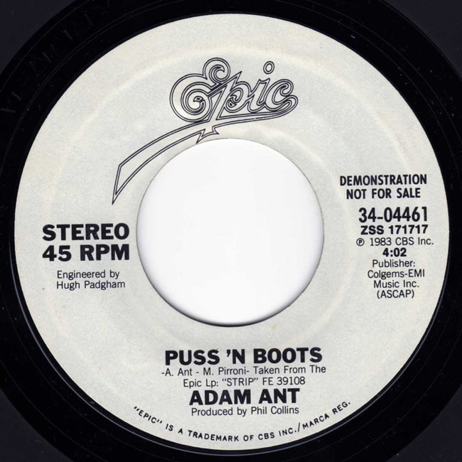 Adam Ant Country Label Catalogue Number Matrix numbers Format Release date A-side B-side Double A sided white label promo. If held up to the light, the vinyl can be seen as red rather than black. |