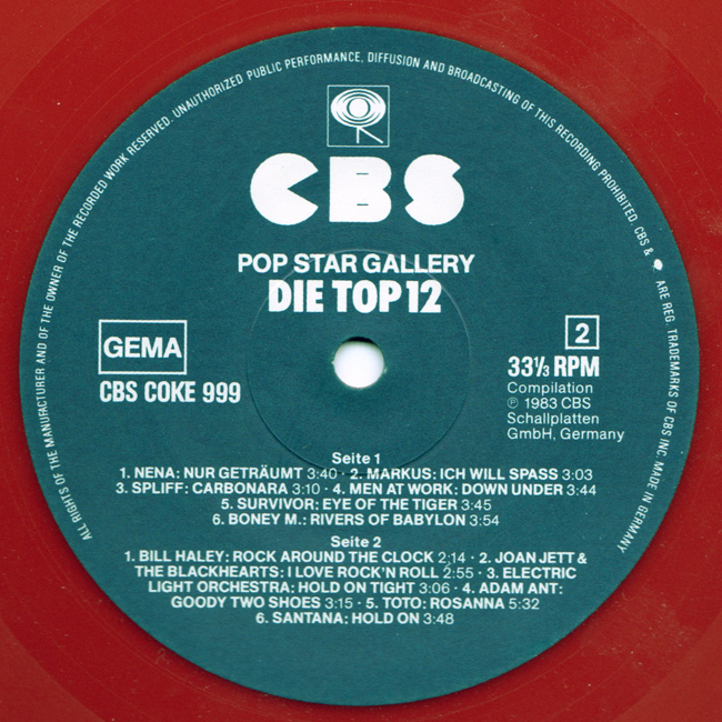 Adam Ant Country Label Catalogue Number Matrix numbers Format Release date Side 1 Side 2 1983 German compilation album from CBS records sponsored by Coca Cola featuring Adam Ant's Goody Two Shoes |
