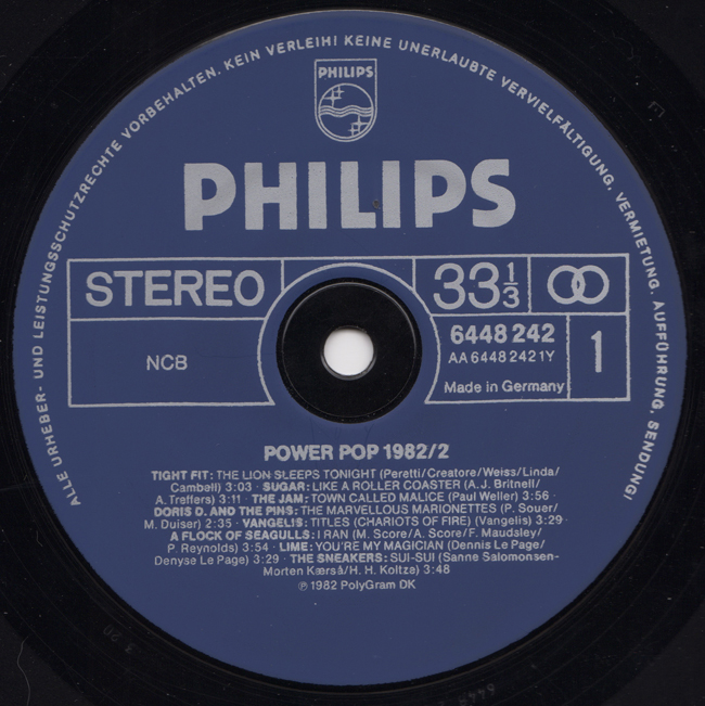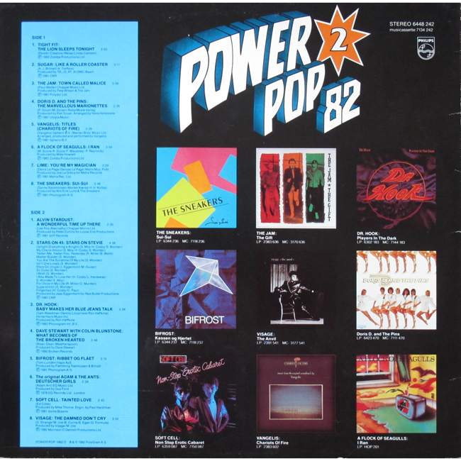 Side 1 Tight Fit - The Lion Sleeps Tonight Sugar - Like A Roller Coaster The Jam - Town Called Malice Doris D. and the Pins Corner - The Marvellous Marionettes Vangelis - Titles (Chariots of Fire) A Flock of Seagulls - I Ran Lime - You're My Magician The Sneakers - Sui-Sui