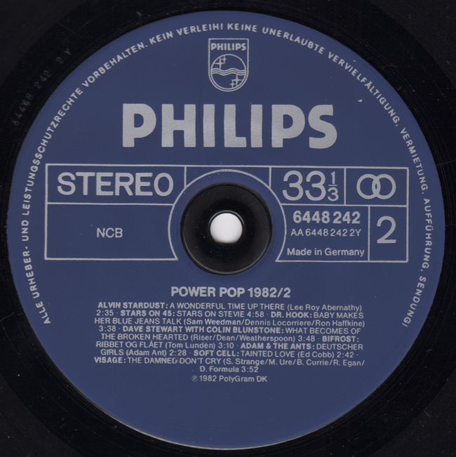 Side 2 Alvin Stardust - A Wonderful TimeUp There Stars on 45 - Stars on Stevie Dr Hook - Baby Makes Her Blue Jeans Talk Dave Stewart With Colin Blunstone - What Becomes of the Broken Hearted Bifrost - Ribbet Og Flaet Adam and the Ants - Deutscher Girls Soft Cell - Tainted Love Visage - The Damned Don't Cry