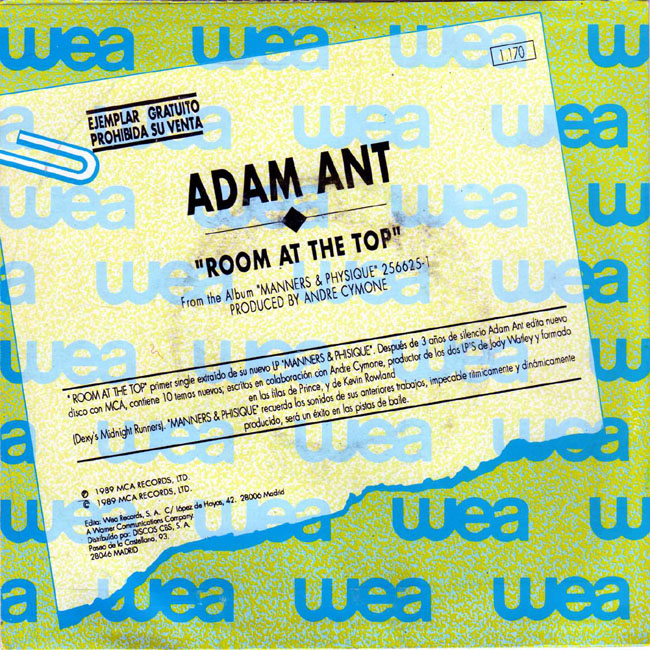 Adam Ant Country Label Catalogue Number Matrix numbers Format Release date A-side B-side Double A sided Spanish promo |