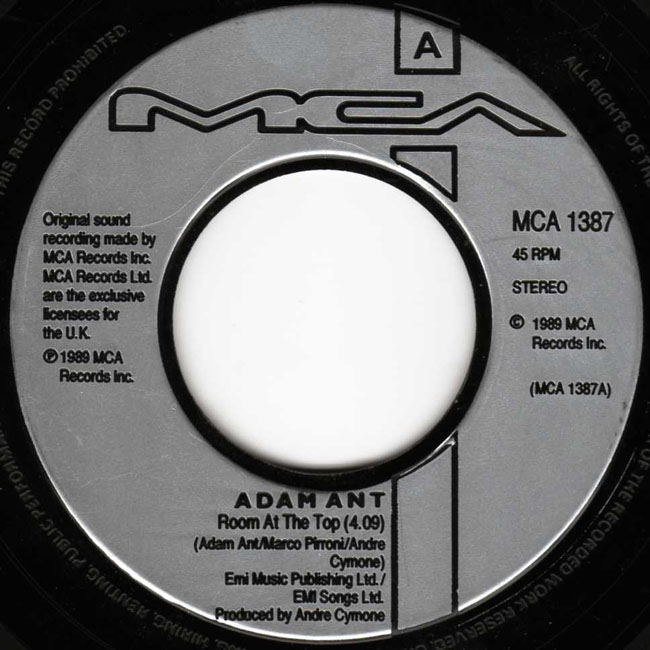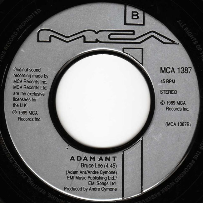 Adam Ant Country Label Catalogue Number Matrix numbers Format Release date A-side B-side Exactly the same as the main page release, the only difference being the juke box sized hole in the record. |