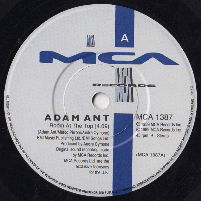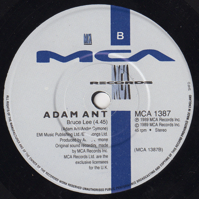 Adam Ant Country Label Catalogue Number Matrix numbers Format Release date A-side B-side Paper labels on the single rather than a silver Injected Moulded label. |