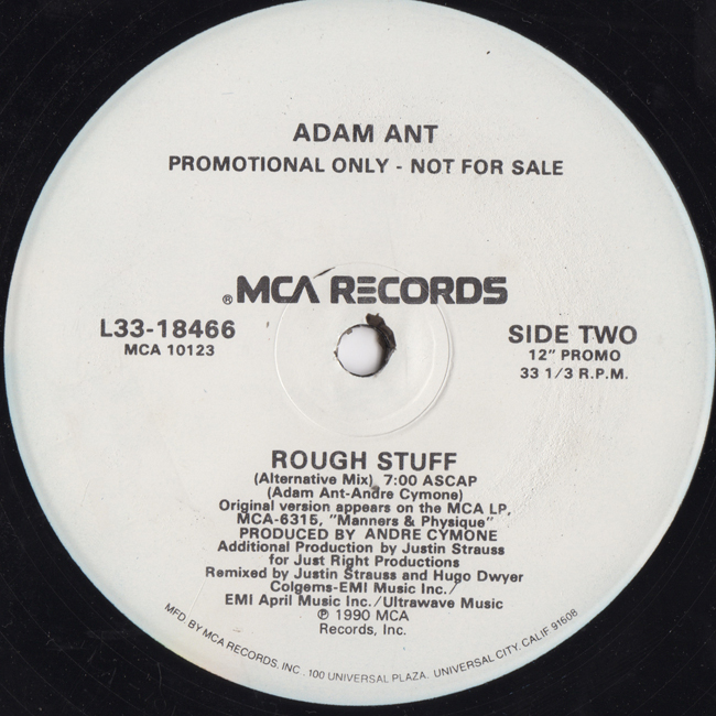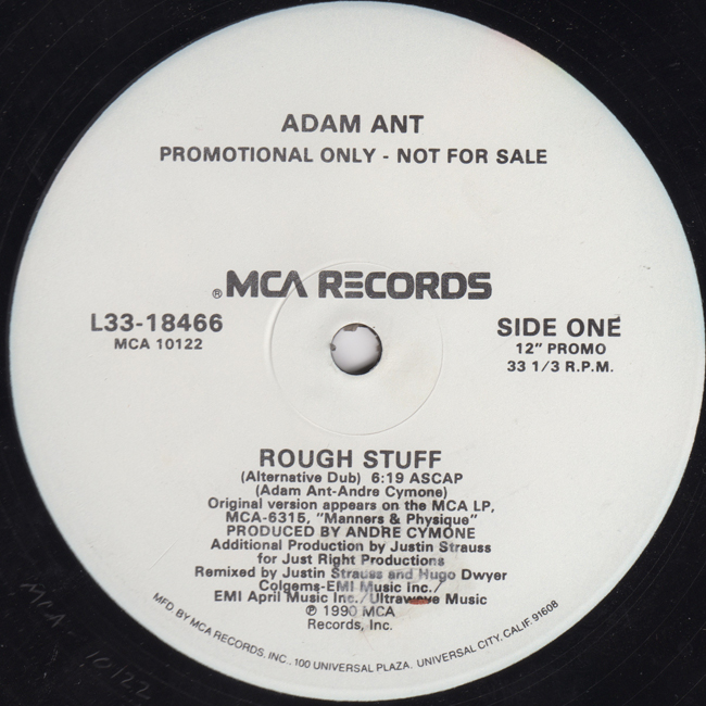 Adam Ant Country Label Catalogue Number Matrix numbers Format Release date A-side B-side 2 track Rough Stuff US 12" White label promo. |
