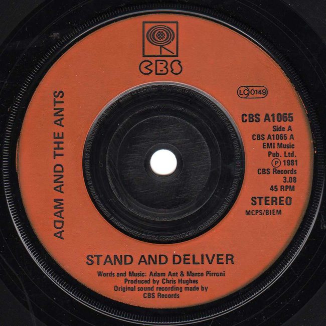 Adam and the Ants Country Label Catalogue Number Matrix numbers Format Release date A-side B-side Some were issued with the standard card sleeve, later pressings were in a paper sleeve. |