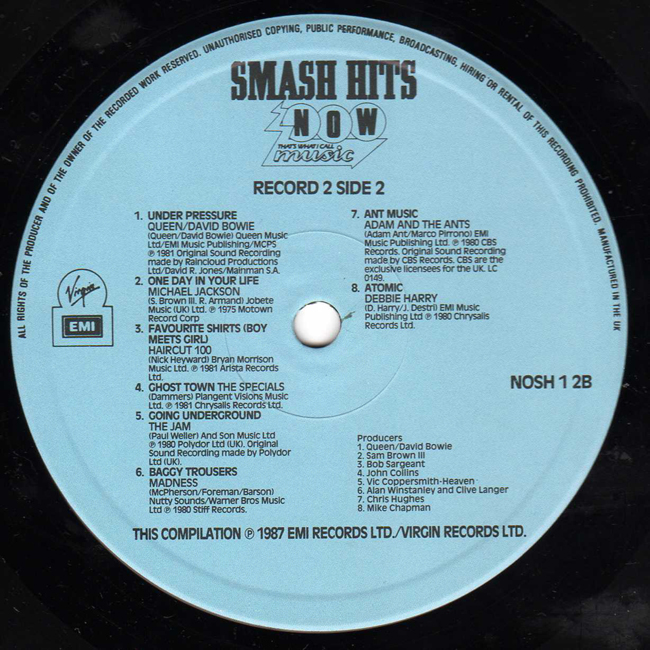 Side 4 Queen/David Bowie - Under Pressure Michael Jackson - One Day In Your Life Haircut 100 - Favourite Shirts (Boy Meets Girl) The Specials - Ghost Town The Jam - Going Underground Madness - Baggy Trousers Adam and the Ants - Antmusic Debbie Harry - Atomic