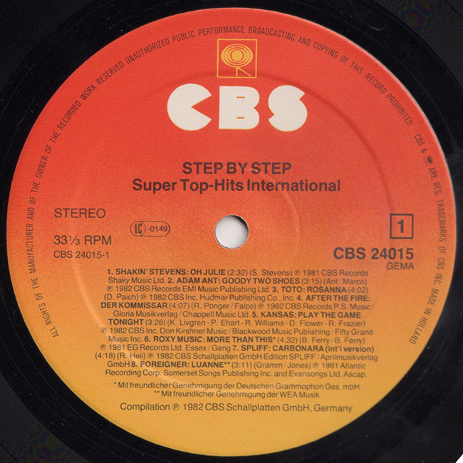 Side 1 Shakin' Stevens - Oh Julie Adam Ant - Goody Two Shoes Toto - Rosanna After The Fire - Der Kommissar Kansas - Play the Game Tonight Roxy Music - More Thank This Spliff - Carbonara Foreigner - Luanne