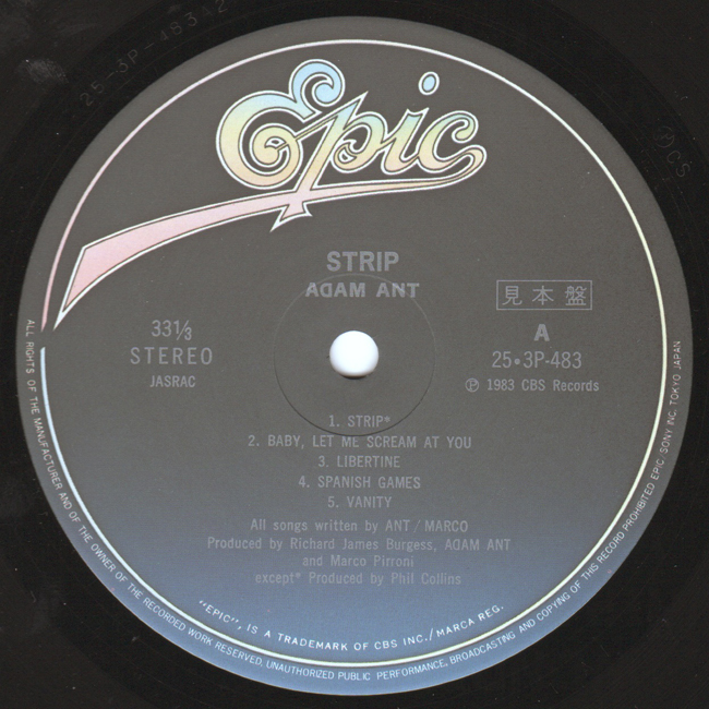 Adam Ant Country Label Catalogue Number Matrix numbers Format Release date Side 1 Side 2