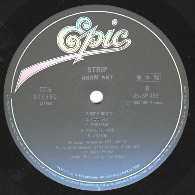 Adam Ant - Bass and vocals Recorded at Abba's Polar Studios, Stockholm, Sweden The cover photos were taken by Allan Ballard Phil Collins played drums on the title track and also Puss'n Boots All tracks were new compositions with the exception Libertine, the music for which was written and demoed in 1980 under the title Who's a Goofy Bunny then? and the music for Navel to Neck which was originally demoed in 1979 with the title Killer in the Home Some copies of the Japanese promo version have a sample sticker on the back sleeve