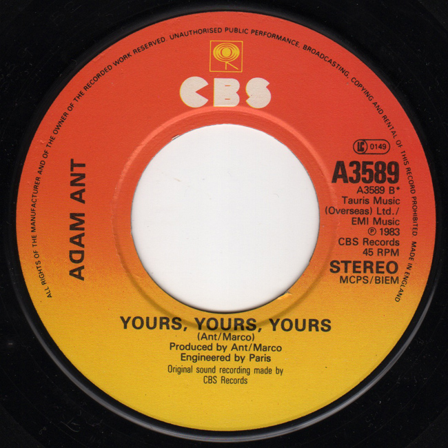 Adam Ant Country Label Catalogue Number Matrix numbers Format Release date A-side B-side Jukebox single |