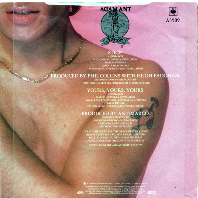 Adam Ant Country Label Catalogue Number Matrix numbers Format Release date A-side B-side IML (Injection Moulded Label) |