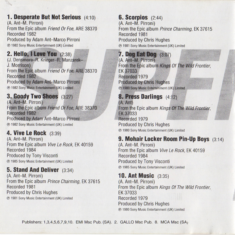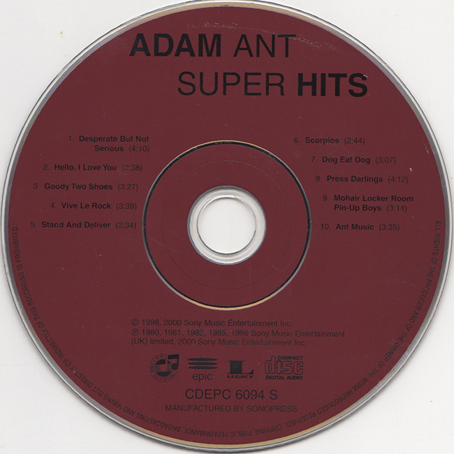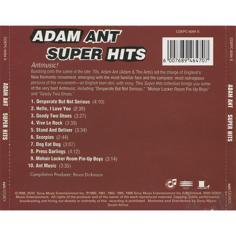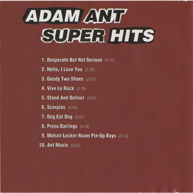 10 track CD including singles, B-sides and album tracks from Adam and the Ants and Adam Ant solo 1980 through to 1985.
