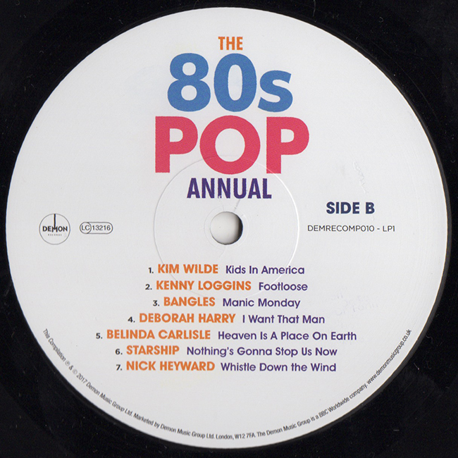Side 2 Kim Wilde - Kids in America Kenny Loggins - Footloose Bangles - Manic Monday Deborah Harry - I Want That Man Belinda Carlisle - Heaven in a Place on Earth Starship - Nothing's Gonna Stop Us Now Nick Heyward - Whistle Down the Wind
