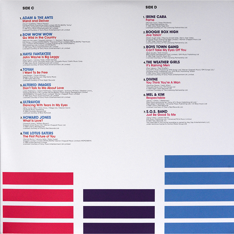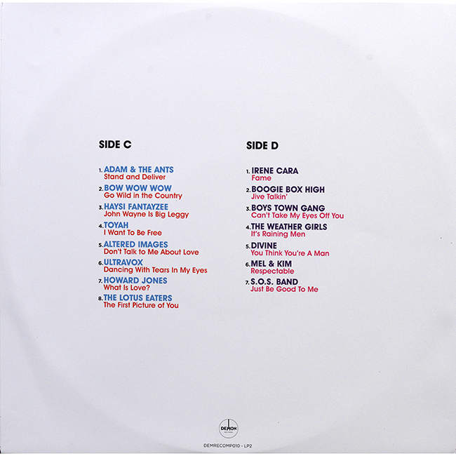 Side 3 Adam and the Ants - Stand and Deliver Bow Wow Wow - Go Wild in the Country Haysi Fantayzee - John Wayne is Big Leggy Toyah - I Want to be Free Altered Images - Don't Talk to Me About Love Ultravox - Dancing With Tears in My Eyes The Lotus Eaters - The First Picture of You
