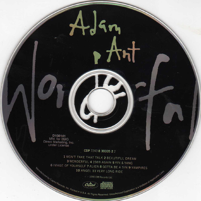 Adam Ant - vocals Adam's first album to be released on CD only which was released in the US before it was in the UK Promotional copies of the album with a completely different catalogue number to the official US release |