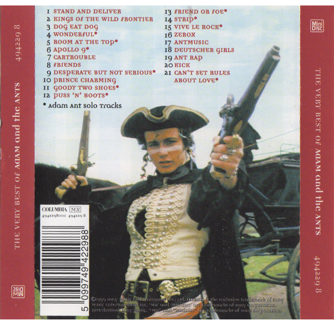 Adam Ant Country Label Catalogue Number Matrix numbers Format Release date Tracklisting 21 track compilation Mini Disc. |