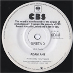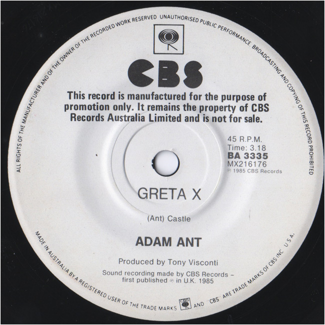 Adam Ant Country Label Catalogue Number Matrix numbers Format Release date A-side B-side White label Australian promo Greta X is an old Adam Ant song from 1978. |