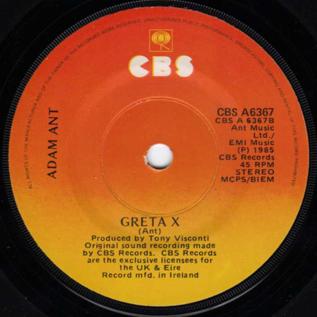 Adam Ant Country Label Catalogue Number Matrix numbers Format Release date A-side B-side Greta X is an old Adam Ant song from 1978. |