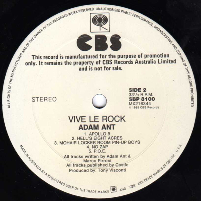 Adam Ant Country Label Catalogue Number Matrix numbers Format Release date Side 1 Side 2