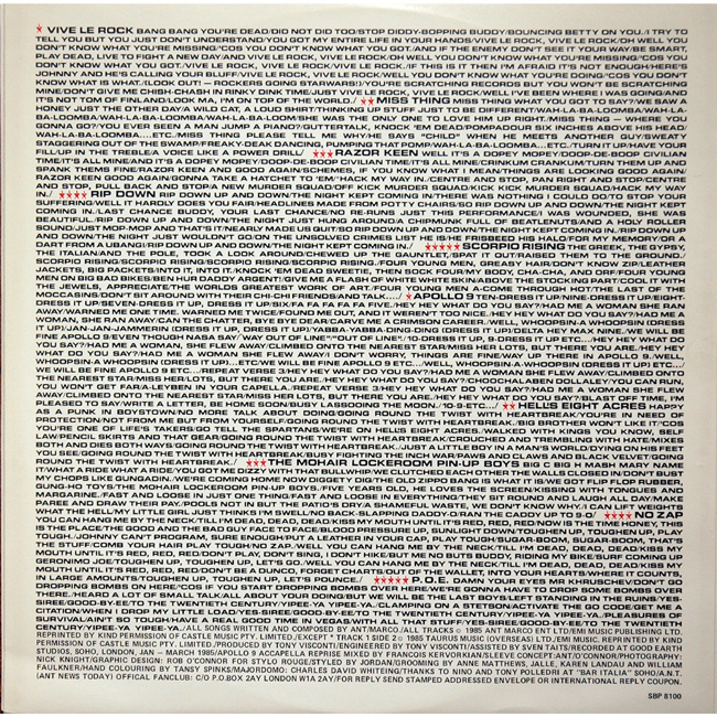 Adam Ant - vocals and piano The album features the uncredited track Apollo 9 - Accapella Reprise which was credited on the CD releases |