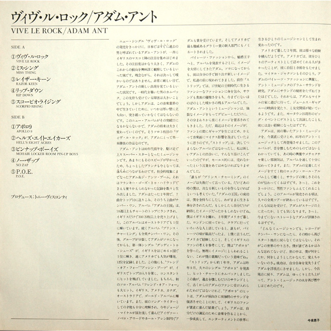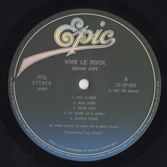 Adam Ant Country Label Catalogue Number Matrix numbers Format Release date Side 1 Side 2