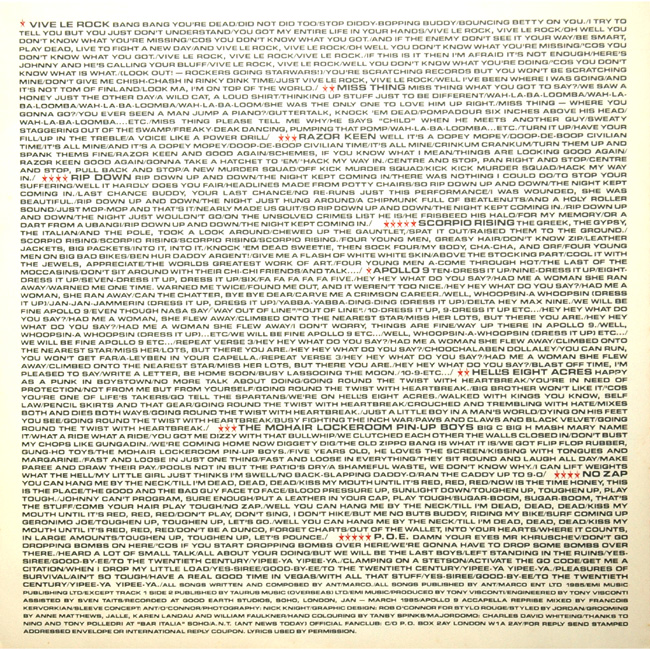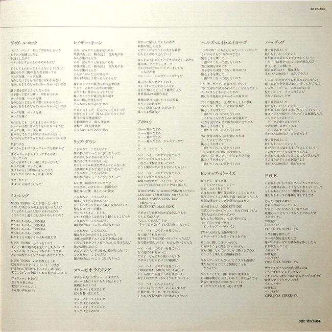 The Japanese lyric sheet was printed on matte paper and in colour as the UK release.