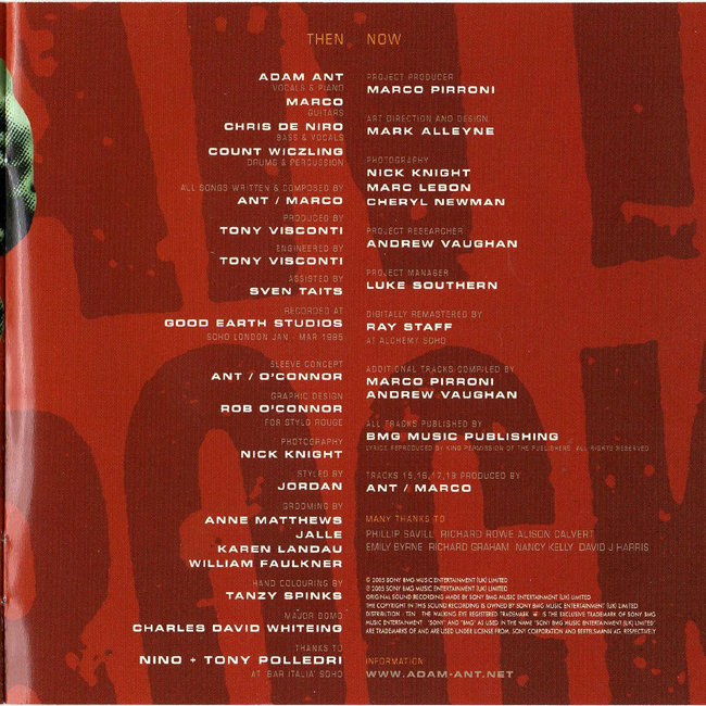 Adam Ant - vocals and piano Marco Pirroni - Guitars Count Wiczling - Drums and percussion Chris De Niro - Bass and vocals