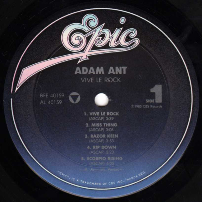Adam Ant Country Label Catalogue Number Matrix numbers Format Release date Side 1 Side 2