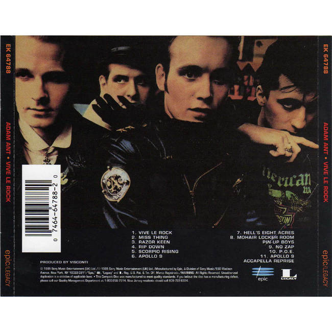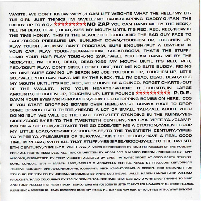 Adam Ant Country Label Catalogue Number Matrix numbers Format Release date Tracks