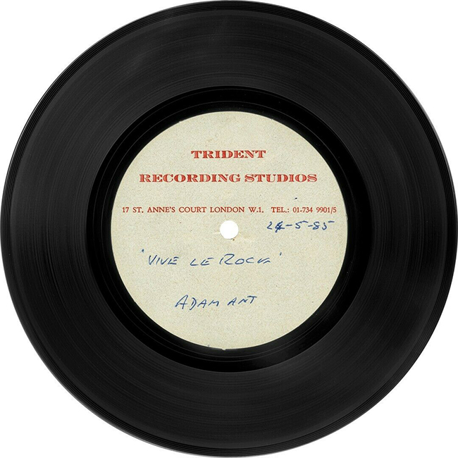 Adam Ant Country Label Catalogue Number Matrix numbers Format Release date A-side B-side Single sided black acetate on aluminium substrate from Trident Recording Studios |