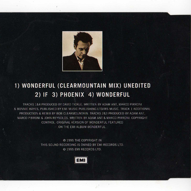 Adam Ant Country Label Catalogue Number Matrix numbers Format Release date tracklist Exactly the same release as the UK CD 2 of a two part set. |