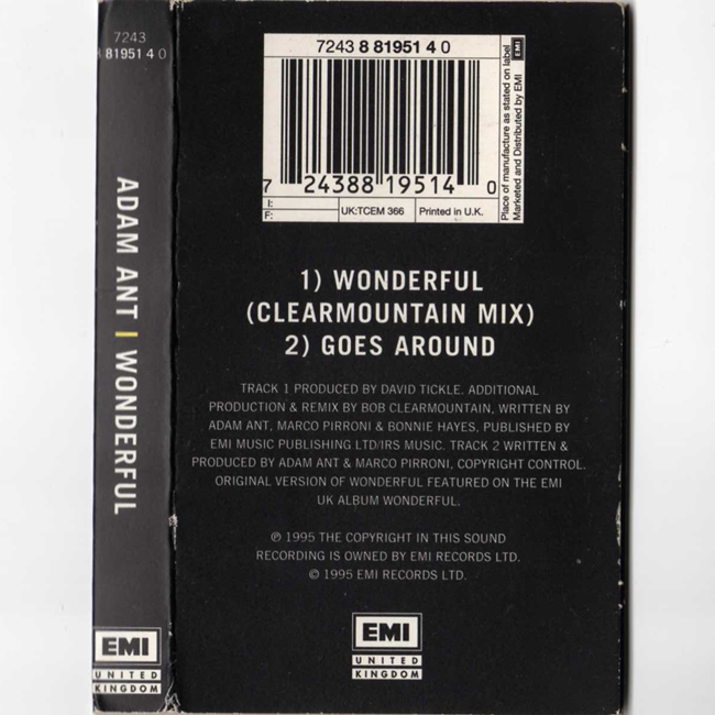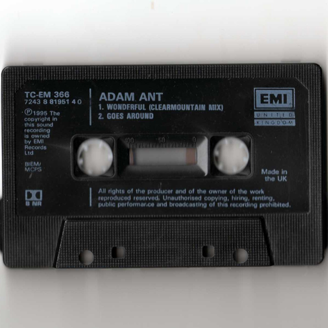 Adam Ant Country Label Catalogue Number Matrix numbers Format Release date tracklist UK Cassette - plays the same on both sides. |