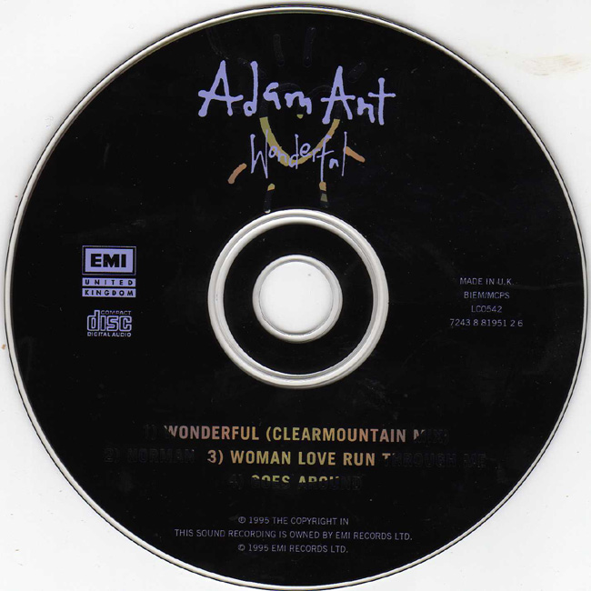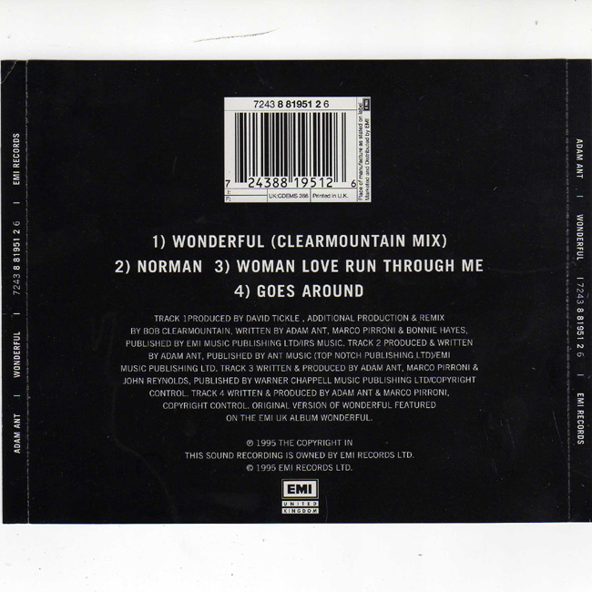 Adam Ant Country Label Catalogue Number Matrix numbers Format Release date tracklist UK CD 1 of a two part set. The CD comes with a space for the second part which was released the following week. |