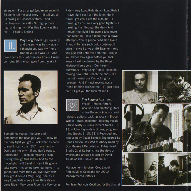 Adam Ant - vocals Adam's first album to be released on CD only which was released in the US before it was in the UK Promotional copy with a Licensed for promotional use. Not for sale stamped onto the disc, a promo sticker on the front sleeve and the bar code on the back altered so that it cannot be sold through the normal channels. |